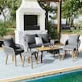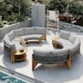 Perfect for any outdoor layout, our range includes exquisite wood sofas, tables, and benches, patio sofa sets. All are crafted from premium wood. Known for its rich color and resilience, Acacia wood brings a touch of natural elegance to your patio, garden, or backyard.