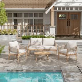 Tozey Chillrest 4-Piece Acacia Wood Patio Conversation Set with Cream Cushion V-LCW220004-BGG - The Home Depot