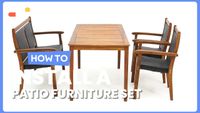 How to Install the 4 Pieces Acacia Wood Patio Rattan Dining Furniture ...