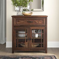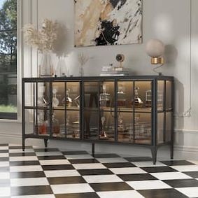 Up top, it's equipped with glass side panels and two clear, glass-lined doors. Inside, removable shelves offer ample storage space for everyday items, decorative objects, and anything else you want to show off while you stay organized. Plus, this accent cabinet easily comes together with only partial assembly. Beautiful, functional and diverse piece. I used this in a master bedroom as an accent table and for storage and in my dining room.