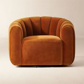 October 8, 2025 - This swivel accent chair features a curved, sculptural back that wraps into sloped arms for a smooth, modern profile. The upholstered seat sits on a concealed metal base with a 360° swivel, blending comfort and function in one compact silhouette. Built with a solid wood frame, it’s filled with foam and fiber for a supportive, medium-firm feel that holds its shape over time.