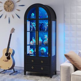 Arched Curio Cabinet with Glass Doors, LED Display Case with Human Sensor LightsOpens in a new window or tab ... Display Cabinet with Acrylic Glass Doors and 3 Adjustable Shelves,Display CaseOpens in a new window or tab