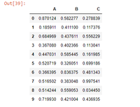 X Y Z 0 1.500 1.111 3.000 1 6.777 NaN 2.333 2 2.444 8.770 10.000 3 NaN NaN 3.000
