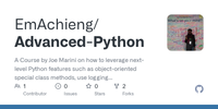 GitHub - EmAchieng/Advanced-Python: A Course by Joe Marini on how to leverage next-level Python features such as object-oriented special class methods, use logging to track performance and user activity, see how to port code from Python 2 to 3, and make your code more efficient and easier to read and maintain. Also how to manipulate data, build custom classes and functions, create lists, and write more elegant, optimized code.