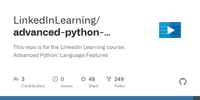 GitHub - LinkedInLearning/advanced-python-language-features-4311093: This repo is for the Linkedin Learning course: Advanced Python: Language Features