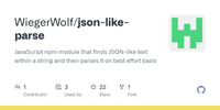 GitHub - WiegerWolf/json-like-parse: JavaScript npm module that finds JSON-like text within a string and then parses it on best effort basis