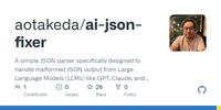 GitHub - aotakeda/ai-json-fixer: A simple JSON parser specifically designed to handle malformed JSON output from Large Language Models (LLMs) like GPT, Claude, and others. · GitHub