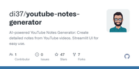 GitHub - di37/youtube-notes-generator: AI-powered YouTube Notes Generator: Create detailed notes from YouTube videos. Streamlit UI for easy use.