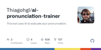 This tool uses AI to evaluate your pronunciation. - GitHub - Thiagohgl/ai-pronunciation-trainer: This tool uses AI to evaluate your pronunciation.