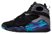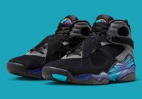 The Jordan 8 Retro Aqua (2025) brings back one of the boldest, most iconic colorways in the Air Jordan legacy. First introduced in 1993 and worn by MJ during the All-Star Game that year, the "Aqua" instantly stood out, not just for its eye-popping palette, but for breaking the mold of traditional basketball shoes at the time. With its distinctive mix of black, bright concord, aquatone, true red, and iron grey, this latest retro honors the original’s energy while fine-tuning the details. · The 2025 version stays true to form, featuring a black nubuck upper, chenille Jumpman tongue patch, and th