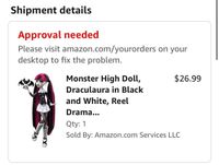 r/MonsterHigh on Reddit: Anyone else getting this message on Amazon? Going on desktop to approve it doesn’t seem to do anything 😭