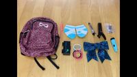 Collection: Moving on to Joss' collection, starting with her beach vibes outfit, I think this is a cute outfit, looks like a casual outfit someone could wear to the beach, I'm not a fan of the hat (at least not with this outfit), but the top is cute and the pants are cute. Next is her cheer practice outfit, and I really like this, it looks like a typical workout-type outfit, but I like the colors (I like that they aren't overly bright but they have those nice blue and green colors in there), and I like that it comes with two tops that you can either layer or wear individually. The next outfit is her cheer competition outfit, and I know this looks like a typical cheer outfit, but I just absolute hate the colors in here. The pink, purple, orange, the sparkles, it seems like there's too much going on at once here. Another common complaint I've seen is that because of the design it's hard to put the doll's arms up, so that wasn't thought out very well. Then we have her shine bright PJs, and these are okay, they don't exactly look like pajamas, especially the bottoms, and the slippers are cute but they don't really go with the rest of it, I do like the top though, and it's an okay outfit, but not my favorite GOTY pajamas set. The next is her cheer team jacket, and this was something that was only available to AG Rewards members, and I really do not like the idea of exclusive items that only certain "members" can buy (unless it's a Members Only Jacket, which this is not! hahah), but another complaint I have of this is that the colors in it are so similar to Joss' sweatshirt, so if you have that already, I don't exactly see the point in getting this as well. Next we have her surf and swim set, and I think this is very cute, I love the colors and prints, and the matching sandals are very cute too, out of all the GOTY swimsuit sets, this is one of my favorites. The next is her wetsuit, which was another AG rewards exclusive, and that's a shame, because I think this item is cute, and once again, I don't like the idea of having items only certain "members" can buy, and this item especially seems pretty essential for her surfing storyline, so I don't see the reason why this would be an "exclusive", unlike the cheer jacket which seems more like an accessory. The last outfit is her beach jumper, and this is okay, it looks like a cute, casual dress, but I don't love it, and it does look a bit toddler-ish with the style and all.