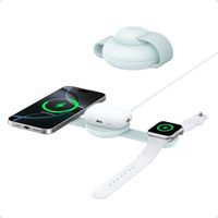 Powerful Performance for iPhone and Apple Watch with 15W Fast Charging Fast charge iPhone 15 Pro up to 20% in just 15 minutes and Apple Watch Series 9 up to 30% in 22 minutes. Experience reliable charging with a certified and MagSafe-compatible wireless charger. (Note: This product is not a portable power bank.) Travel-Friendly and Ultra-Portable Design Take the convenience of wireless charging anywhere with the foldable, baseball-sized Qi2 3-in-1 charger. 3 in 1 Wireless Charger Keep your workspace tidy and enjoy the 3-in-1 wireless charger that can charge multiple devices si