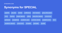 Some common synonyms of special are especial, individual, particular, and specific. While all these words mean "of or relating to one thing or class," special stresses having a quality, character, identity, or use of its own.