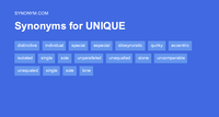 Some common synonyms of unique are eccentric, erratic, odd, outlandish, peculiar, quaint, singular, and strange. While all these words mean "departing from what is ordinary, usual, or to be expected," unique implies singularity and the fact of being without a known parallel.