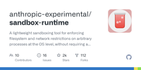 October 25, 2025 - A lightweight sandboxing tool for enforcing filesystem and network restrictions on arbitrary processes at the OS level, without requiring a container. - anthropic-experimental/sandbox-runtime