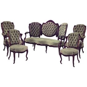 American Victorian rosewood 6 piece salon set with scroll design back. Upholstery varies in color ... Late 19th century 7 piece burr birch living room suite circa 1890. Set comprises of 1 sofa and 6 ... This is a large antique overmantel mirror.