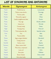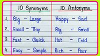 10 Synonyms and Antonyms | 10 Antonyms and 10 Synonyms words | ...