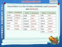 October 27, 2022 - Words having opposite meaning are known as antonyms. For Example: The document Synonyms and Antonyms Chapter Notes | English Olympiad Class 4 is a part of the Class 4 Course English Olympiad Class 4.
