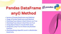 June 26, 2025 - The DataFrame.any() function from the Python library pandas is used to check if at least one value along a specified axis in a DataFrame evaluates to True.