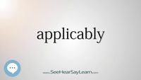 Video shows what applicably means. In an applicable manner.. Applicably Meaning. How to pronounce, definition audio dictionary. How to say applicably. Power...