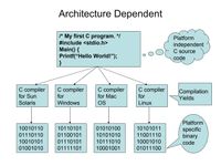 The same sort of program written in Java will also compile on any machine with a Java compiler installed, but the resulting .class file will also run on any machine with a Java VM. That is the architectural neutral part.