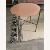 Beautiful blush pink glass table top with brass legs. Can be used a coffee table set or bedside tables. No marks or scratches. Brand New Condition.