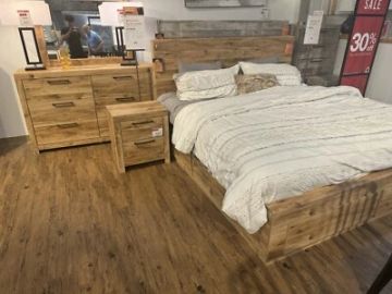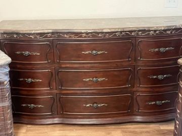 The bedframe arrived scratched and the footboard has slowly come undone; the nightstand and dresser drawers are incredibly stiff and hard to close even after lubrication; the dresser drawers arrived cracked and with missing finish on two of them; the dresser drawers themselves are incredibly tiny.