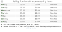 Add it to your website, your phone or even your desktop - opening times, phone numbers and the road to Store of the Ashley Furniture In Brandon, 925-18Th Street North.