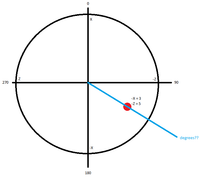 For example, -pi/2 becomes -90 after the multiplication, and adding that to 360 results in 270, which gives you the amount of degrees to rotate counter-clockwise from the positive x-direction to reach the point (which is what you're looking for I think.)
