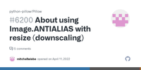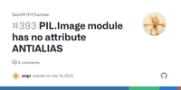 Answer from slothrop on Stack OverflowThe ANTIALIAS constant was removed in Pillow 10.0.0 (after being deprecated through many previous versions). Now you need to use PIL.Image.LANCZOS or PIL.Image.Resampling.LANCZOS.