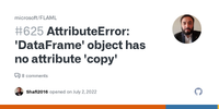 In general, AttributeError: 'DataFrame' object has no attribute '...', where ... is some column name, is caused because . notation has been used to reference a nonexistent column name or pandas method.