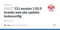 CLI version 1.22.0 breaks aws eks update-kubeconfig