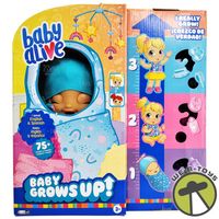 - SHE REALLY GROWS: Baby Alive Baby Grows Up transforms from newborn to baby to big girl, changes size 4 inches (10 cm) and has 75+ sounds and phrases! Interactive doll can be reset for repeatable play - DISCOVER EYE AND HAIR COLOR: With her first bottle, she opens her eyes to reveal their color.