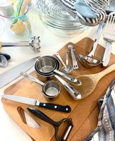 Let’s dig in to the best high quality and versatile kitchen essentials that provide the most value for your money. QuickLinksChef's KnifeCutting boardCan OpenerMeasuring CupsMeasuring SpoonsMixing BowlsColanderVegetable PeelerPotato MasherWhiskSalad SpinnerGraterShearsCitrus JuicerGarlic PressParing KnifeBread KnifeHoning SteelKnife Sharpener · If you’ve only ever used a cheap chef’s knife for your cooking needs, switching to a high quality knife will be a night and day difference.