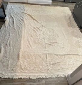 Help! These 1950’s bright and colorful Bates bedspreads are easy to identify and value….. IF you have one of the five super popular versions. But this little guy! I have scoured for weeks and have only found one ever sold and it was so long ago there’s no record of price.