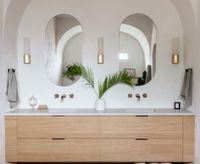 July 22, 2022 - The modern farmhouse aesthetic is an enduring look that can be achieved with clever IKEA storage hacks. 'In our primary bathroom, we used a combination of IKEA's Sektion cabinets, IKEA's Maximera drawers, and Semihandmade's CLJ Cove door and drawer fronts to achieve the look of a custom, light wood 93" double vanity,' says Jackie, of @jackie_ziz.
