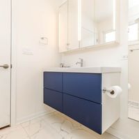 September 28, 2021 - As this simple vanity demonstrates, the proper hardware can make all the difference. In this bathroom designed by Tracy Cole of Hello Flora, copper half-moon drawer pulls by Superfront instantly make a simple white IKEA sink cabinet look more expensive than it is. Mounting the faucets into the wall rather than the counter gives the space a fancy, almost resort-style feel. ... Even small-space dwellers can hack an IKEA bathroom vanity, as demonstrated by this bathroom designed by the real estate developers behind Blu and White Homes.