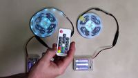 The color-changing RGB LED strip light comes with the battery box and it requires 4pcs AA batteries (sold separately). Each RGB LED Strip Lighting kit includes one RF Wireless Controller. This mini controller is easy to use, just press the related ke