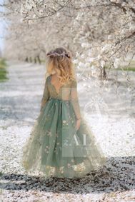 "I ordered this dress for my flower girl in my wedding and it is absolutely perfect! Shipping was fast and the quality of the dress is better than I expected! Would recommend" Sage Green Floral Embroidered Tulle Flower Girl Dress, Easter Girls Dress, Spring Flower Girl Dress, Summer Floral Dress for Girls ... "This dress is beautifully made & just perfect for pictures!