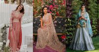 October 16, 2023 - See how flawlessly this bride styled it on her wedding day. She indeed looks like a million bucks in this long kurta and gharara set. ... No women can ever have enough blacks in her wardrobe. So, we thought why not bombard you with one more. Here's a modish mirror work ensemble that features a beautifully embellished lehenga skirt, a strappy bustier top and a short jacket outlined with mirror work on the edges. ... Fashion diva Kiara Advani literally warmed our fashion-hungry eyes dressed in this ravishing red ensemble which she perfectly paired with a deep V plunging neckline blouse.