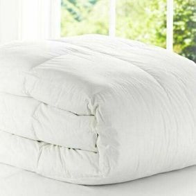 300TC Cotton Shell. 100% Down-Alternative fill, Overfilled, Soft, Heavy, and Warm.
