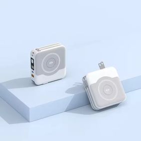 A white magnetic wireless charging pad offering 15W fast charging for iPhone and Samsung devices. ... A slim, portable 3-in-1 wireless charger and power bank for iPhone, AirPods, and Apple Watch.