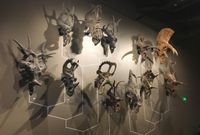 The Velociraptor, a carnivore, was found with his claw locked to his prey’s carotid artery. While the Protoceratops, a herbivore, wrapped his biting jaw around the Velociraptor’s arm. It is believed they were fossilised by a falling land mass which covered and killed them both, while they were locked in a battle for their lives. ... Meet Sue - the largest, best preserved, and most complete T-rex ever to be discovered.