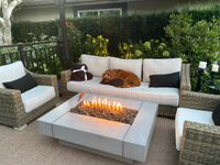A lot of people use the terms fire pit and fire table interchangeably, but we think of fire pits as more portable. You can, provided you follow the placement guidelines in your installation manual, move your fire pit around as needed. A concrete fire table, especially one connected to a natural gas line, would be harder to move.