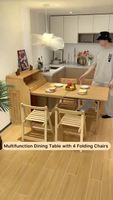Multifunction Dining Table with 4 Folding Chairs-Natural