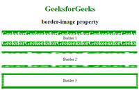August 2, 2023 - Example: This example shows the use of the border-image property. ... <!DOCTYPE html> <html> <head> <title> CSS | Border Images </title> <style> body { text-align: center; } h1 { color: green; } .border1 { border: 10px solid transparent; padding: 15px; border-image-source: url( https://media.geeksforgeeks.org/wp-content/uploads/border1-2.png); border-image-repeat: round; border-image-slice: 30; border-image-width: 20px; } .border2 { border: 10px solid transparent; padding: 15px; border-image: url( https://media.geeksforgeeks.org/wp-content/uploads/border1-2.png) 30 stretch; } .border3 { border