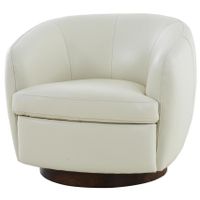 This chair is wrapped in genuine leather with a solid color. We love how the swivel base helps you turn in and out of conversations with ease. The seat is filled with foam to support you as you relax and the diamond, button-tufted cushions add a tailored touch. Plus, its seat cushions are removable, so it's easy to clean. Best of all, no assembly is required.
