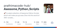 GitHub - prathimacode-hub/Awesome_Python_Scripts: 🚀 Curated collection of Awesome Python Scripts which will make you go wow. Dive into this world of 360+ scripts. Feel free to contribute. Show your support by ✨this repository.