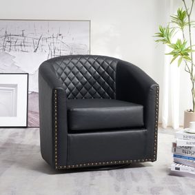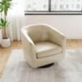 Discover our 32" wide genuine leather swivel barrel chair, crafted from 100% premium genuine leather that is water-resistant for lasting beauty. The tufted accents lend a timeless elegance, while the expertly engineered wood frame ensures exceptional structural integrity with its...